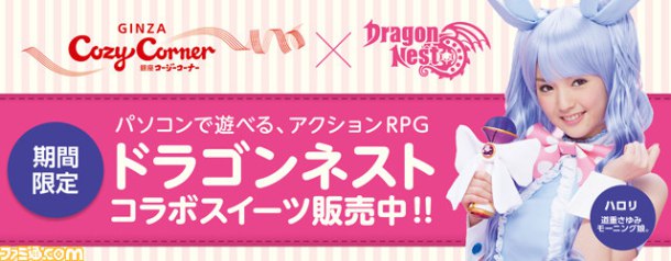 2013.07.28 18:25Michishige Sayumi közre fog működni a Ginza Cozy Corner torta-áruházlánccal. Sayumi az MMO Dragon Nest Harori nevű karaktereként jelenik majd meg, és egy speciális Harori-tortát fog reklámozni, mely a játékhoz kötődik majd több ponton is. A sütit az összes Ginza Cozy Corner üzletben meg lehet majd vásárolni augusztus 2 és 29 között. Event-et is tartanak majd a Ginza Cozy Cornen székházában augusztus 1-jén, Sayumi itt az első 300 vendég rendelkezésére áll majd, mint eladó. Ezen kívül az augusztus 3-i és 4-i H!P nyári koncerteken egy speciális Harori-táska is megvásárolható lesz.